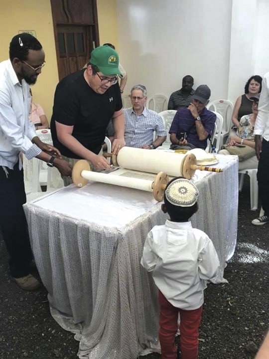 Were given to the Jewish community of Arusha, a sefer Torah along with suitcases full of mezzuzot, tefillin, talessim, siddurim, machzorim, books (many children’s books donated by PJ Library), and other necessary Jewish objects to the community.