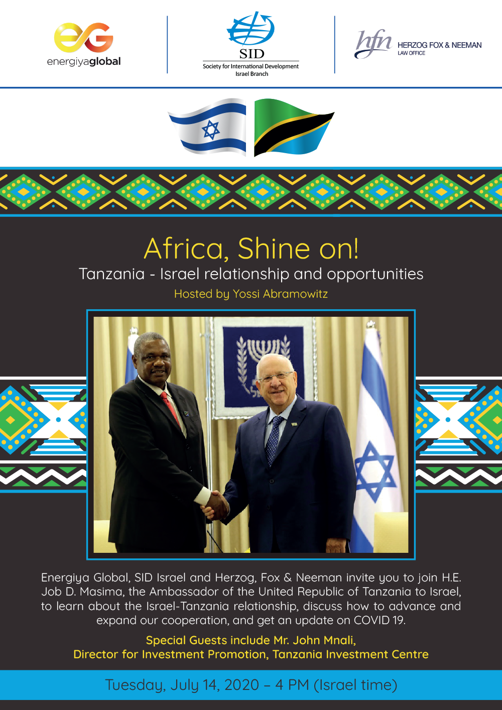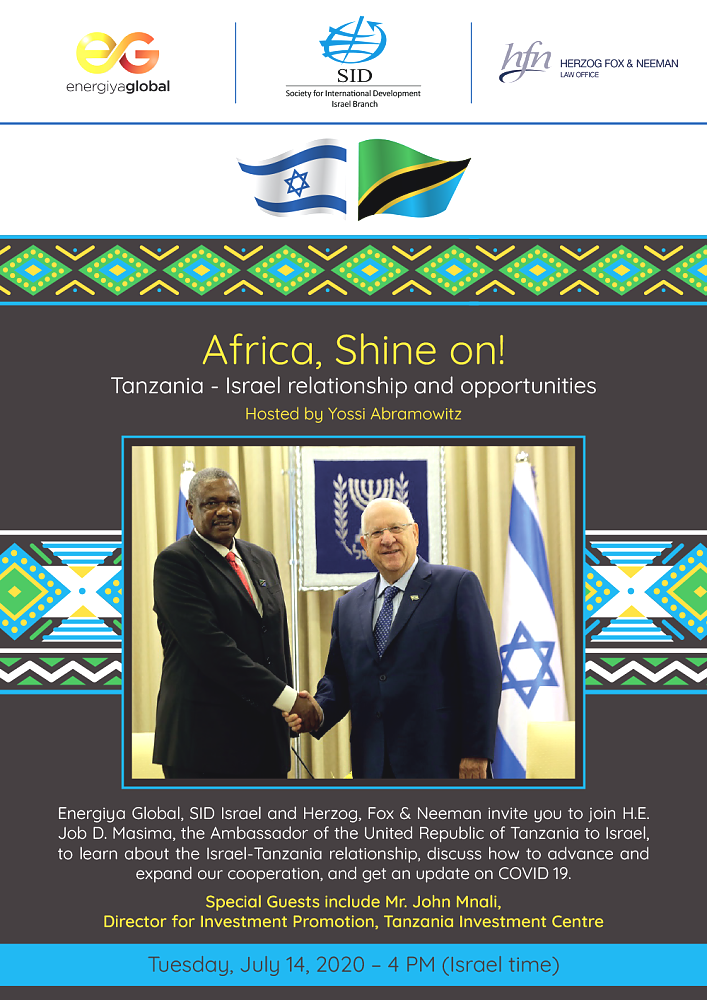H.E. Job Daudi Masima, Ambassador of the United Republic of Tanzania was at the heart of a Africa Shine On!'s meeting on Zoom organised by SID Israel (Society for International Development - Israel Branch) on 14 July 2020.