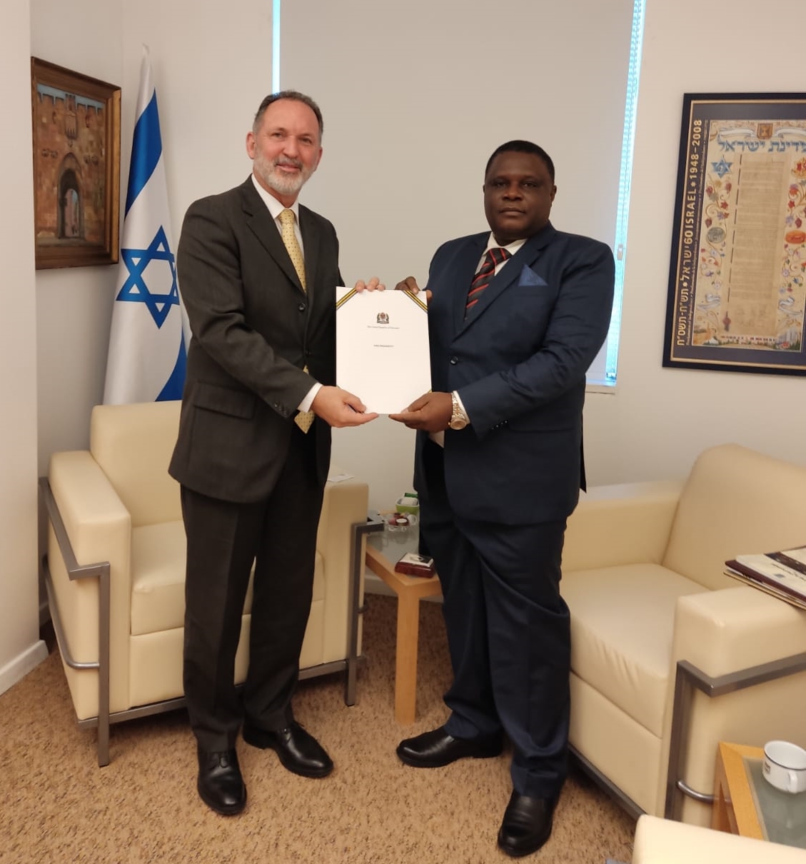 H.E. Mr. Alex Gabriel Kallua, Ambassador of the United Republic of Tanzania in Israel presented his credentials to the Chief of State Protocol, Amb. Gil Haskel, Ministry of Foreign Affairs of Israel on Wednesday, 16 March 2022, at the Protocol Department .