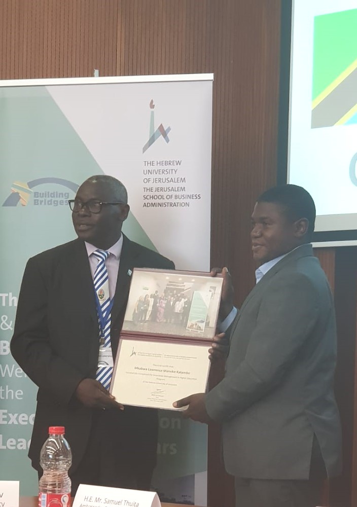 H.E. Job Daudi Masima, Ambassador of the United Republic of Tanzania, represented by Mr. Fredierich Gilbert Mwakitwange, Financial Attache, was cordially invited to attend the Closing Ceremony and Festive Farewell lunch of the "5th Innovative Leadership Seminars", jointly developed by Building Bridges and the Hebrew University of Jerusalem.