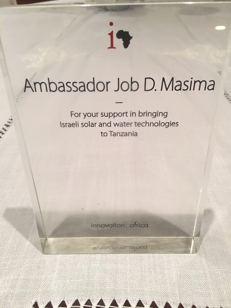 On this occasion, H.E. Mr Job Daudi Masima was rewarded for his support in bringing Israeli Solar and Water Technologies to Tanzania.