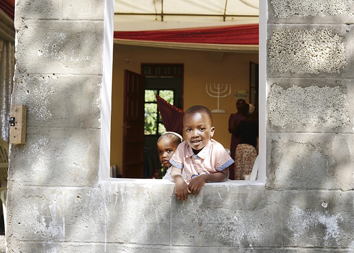 Children look out of the window of their shul in Arusha. (STEFANIE DIAMOND)
