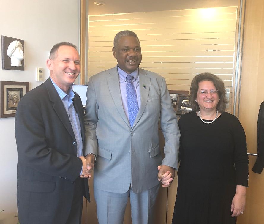 After a cordial and promising meeting at the Ministry of Foreign Affairs in Jerusalem, Israel, between H.E. Job Daudi Masima, Ambassador of the United Republic of Tanzania, Ambassador Gil Haskel, Head of MASHAV and Ambassador Yael Ravia-Zadok, Deputy Director General, Head of Economic Division, on his way to pay a visit to Rev. Father Venance Gaudence Bharotota Shundu, (hereafter in picture)
