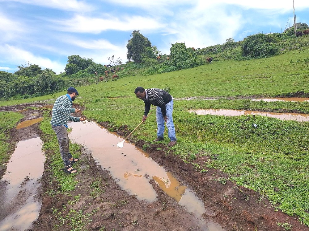 A field worker uses ZzappMalaria to scan bodies of water set for treatment. Courtesy