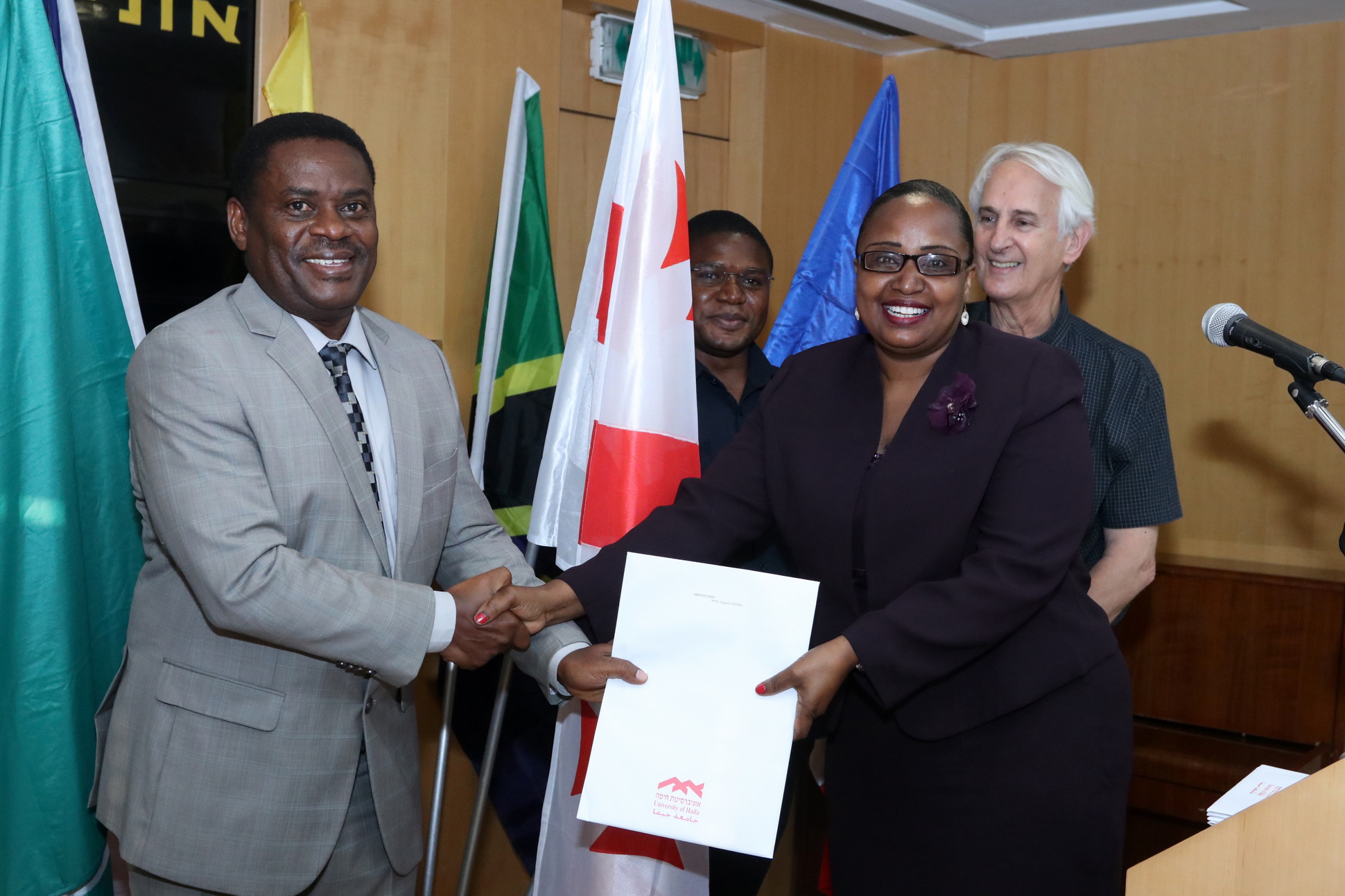 On July 23rd, 2019 Brig. Gen. Kahema Juni Mziray, Defence Attache and Mr. Fredierich Gilbert Mwakitwange, Financial Attache both representing Amb. Job Daudi Masima attended the graduation ceremony and the private farewell party with Pr. Avi Sagi-Schwartz, Ph.D., Professor of Psychology and Child Development, Founder and Director (Emeritus), Center for the Study of Child Development, University of Haifa as Master of Ceremony for all child development students including distribution of the MA degree to the child development graduates among who was standing Ms. Genoveva Gerard Chuchuba from the United Republic of Tanzania. Our graduate was honored by the Attaches' presence and heartily moved by the Ambassador's words of support and congratulations they convey on his behalf.