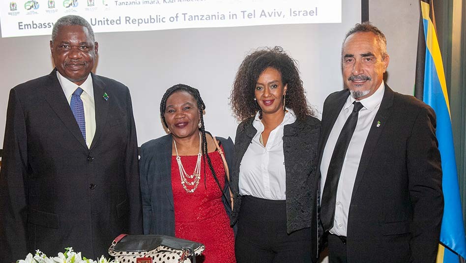 Left to right: Ambassador Job Daudi Masima, his spouse, Mrs. Yohana Joan Masima, Ms. Messeret Woldemichael, Mr. Chirich Nuriel Kasbian, Honorary Consul of Tanzania, her spouse (photo: Gidi Avinery)